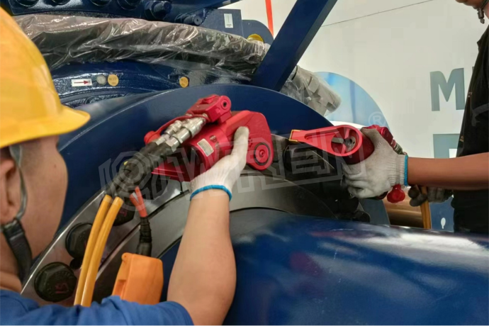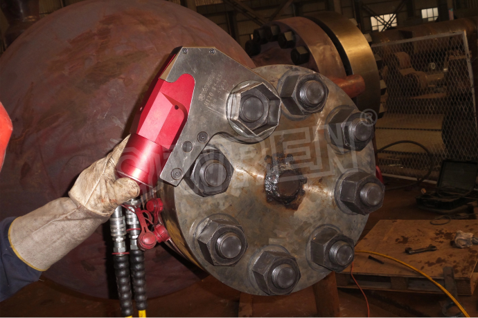4.  一致性高:配合同步液壓系統(tǒng),可同時(shí)使用多個(gè)扳手,確保在一個(gè)法蘭上的所有螺栓受力均勻一致,這是手動(dòng)工具無(wú)法實(shí)現(xiàn)的。
