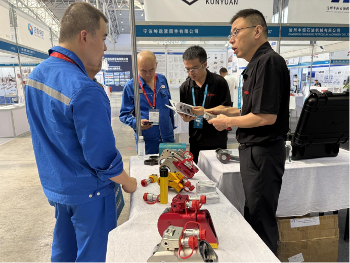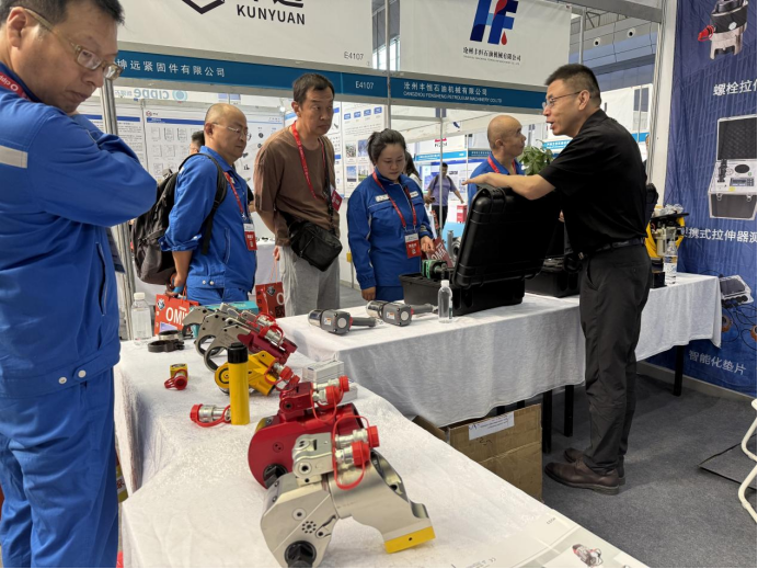 杭州雷恩液壓設(shè)備制造有限公司也積極參與其中。在展會上,雷恩液壓攜旗下一系列先進(jìn)的液壓設(shè)備精彩亮相,其展品涵蓋了液壓扭矩扳手、電動扭矩扳手、扭矩扳手泵、液壓缸等多種產(chǎn)品,憑借適配油田高壓作業(yè)環(huán)境的特性,吸引了眾多參觀者的目光。不少專業(yè)觀眾在展位前駐足,詳細(xì)詢問產(chǎn)品性能、應(yīng)用場景等問題,雷恩的工作人員都給予了專業(yè)且耐心的解答。
