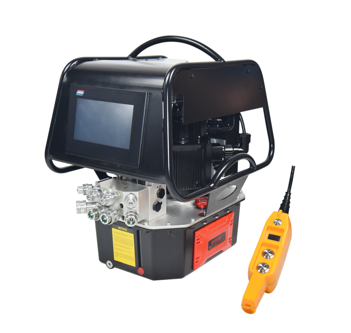 雷恩 KLW4230 系列液壓扳手智能泵,電動三級流量泵,擁有7英寸工業(yè)彩色液晶屏靈敏可靠,閥組連接方式選配可選擇一拖多,自帶冷卻模塊,運行時高效散熱。