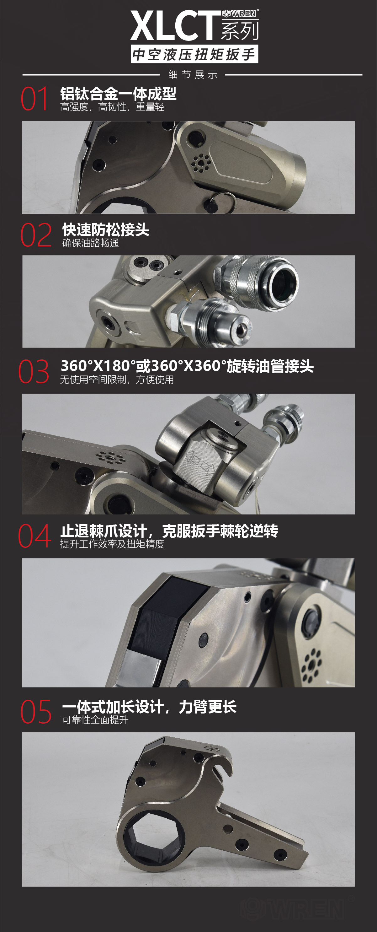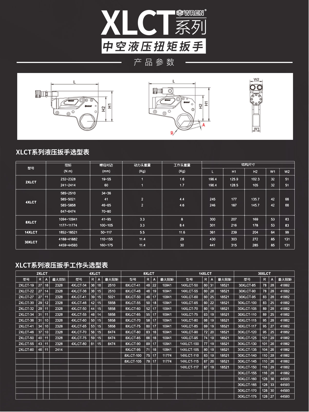 XLCT系列是WREN公司主力投放國際市場的一款專業(yè)級別的中空型液壓扭矩扳手。與驅(qū)動型液壓扭矩扳手相比中空型液壓扭矩扳手直接作用于螺母,本身體積輕薄,適合在狹小的空間中作業(yè)。XLCT系列中空扳手可以通過調(diào)換工作頭、裝配變徑套來適應不同的工況,它覆蓋了從S19~S175范圍內(nèi)所有的螺栓。WREN品牌提供全球售后服務,擁有完整的配套供應能力,通過德國萊茵TÜV認證。